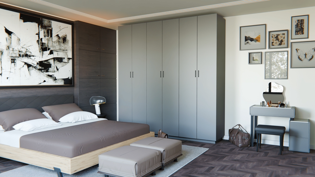 BIJNEN-slaapkamer met een lichtgrijze kast