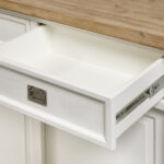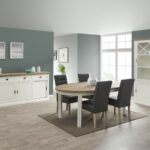 Massief acaciahouten eetkamerset, een subtiele combinatie van klassiek en eigentijds. Deze set is perfect voor liefhebbers van traditionele meubels en heeft een witte afwerking voor de meubels met een naturel houten blad.