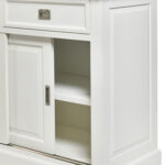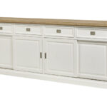 De vitrinekast van 130 cm biedt de ideale ruimte om je favoriete voorwerpen uit te stallen, ze te beschermen tegen stof en ze zo goed mogelijk tot hun recht te laten komen. De grote ladekast van 240 cm, met 4 laden en 4 schuifdeuren, combineert praktisch en esthetisch en heeft geen extra ruimte nodig om te openen.