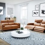 Deze tweezitsbank combineert comfort en elegantie en is bekleed met hoogwaardig leer in een warme cognacbruine tint. Het modulaire ontwerp bestaat uit twee stoelen die met elkaar verbonden zijn door scharnierende gewrichten, waardoor de hoofdsteunen handmatig kunnen worden gekanteld of elektrisch in hoogte kunnen worden versteld om de gewenste houding te bereiken. De metalen profielen die de zijkanten omlijsten, versierd met een orthogonaal gewatteerd patroon, bieden structurele steun aan het geheel.