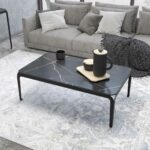 Ontdek de gloednieuwe Sumatra collectie, een serie meubels gemaakt van Akante’s zwart marmeren keramiek. De Sumatra salontafel past harmonieus in je woonkamer met zijn chique, strakke ontwerp. Het blad is volledig gemaakt van zwart marmeren keramiek en is 12 mm dik, waardoor stevigheid gegarandeerd is. De poten van de tafel, van mat zwart gelakt staal, versterken de kenmerkende stijl.