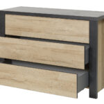 Ontdek de eigentijdse elegantie van de Phaedra slaapkamer, een Belgische creatie met een decor van imitatie-eik versterkt met zwarte details. Deze zorgvuldig ontworpen slaapkamer combineert stijl en functionaliteit om een gastvrije omgeving te creëren.